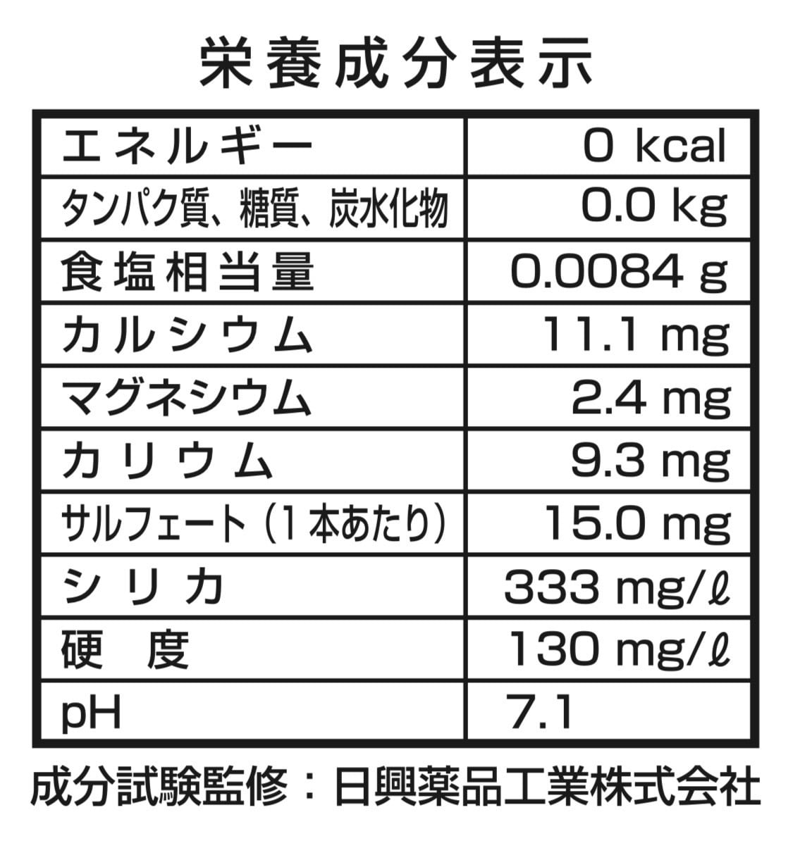 原材料名 水(深井戸水)/高濃度シリカ水溶液